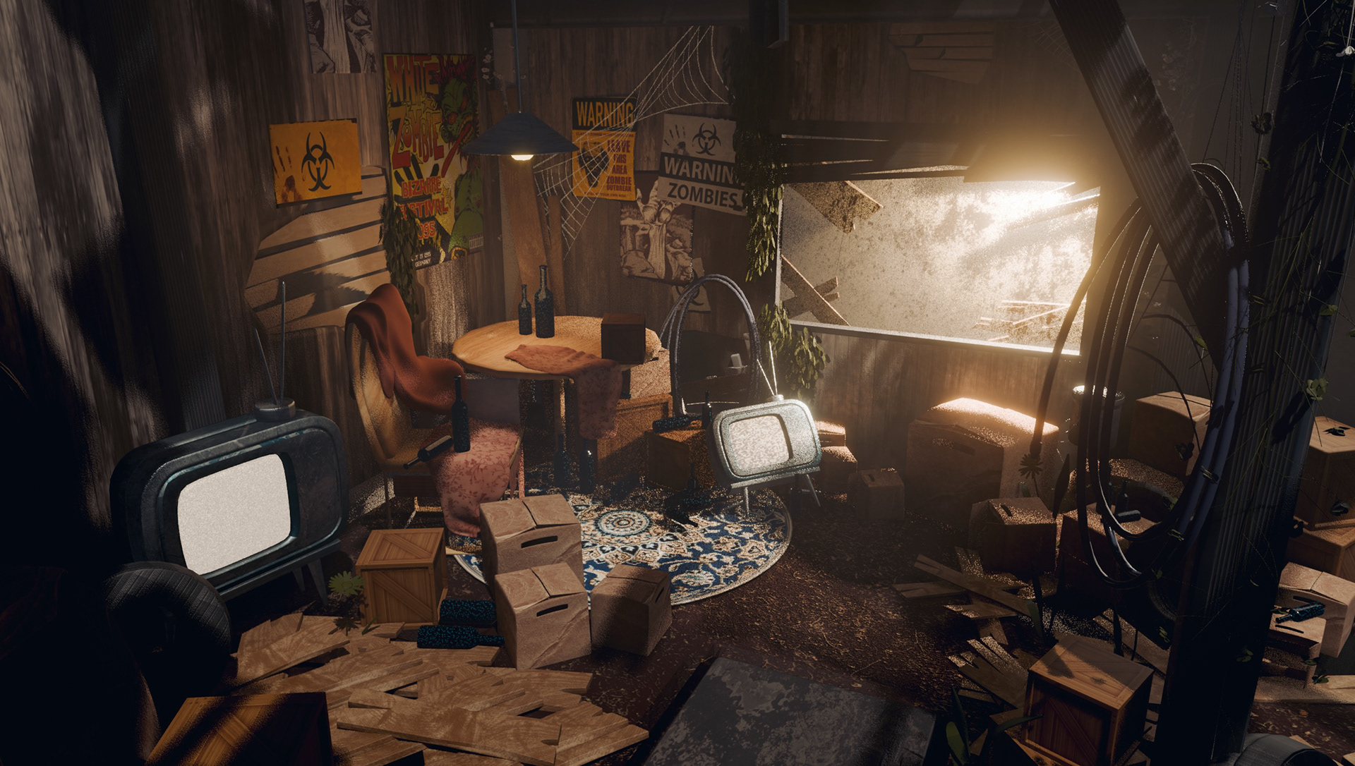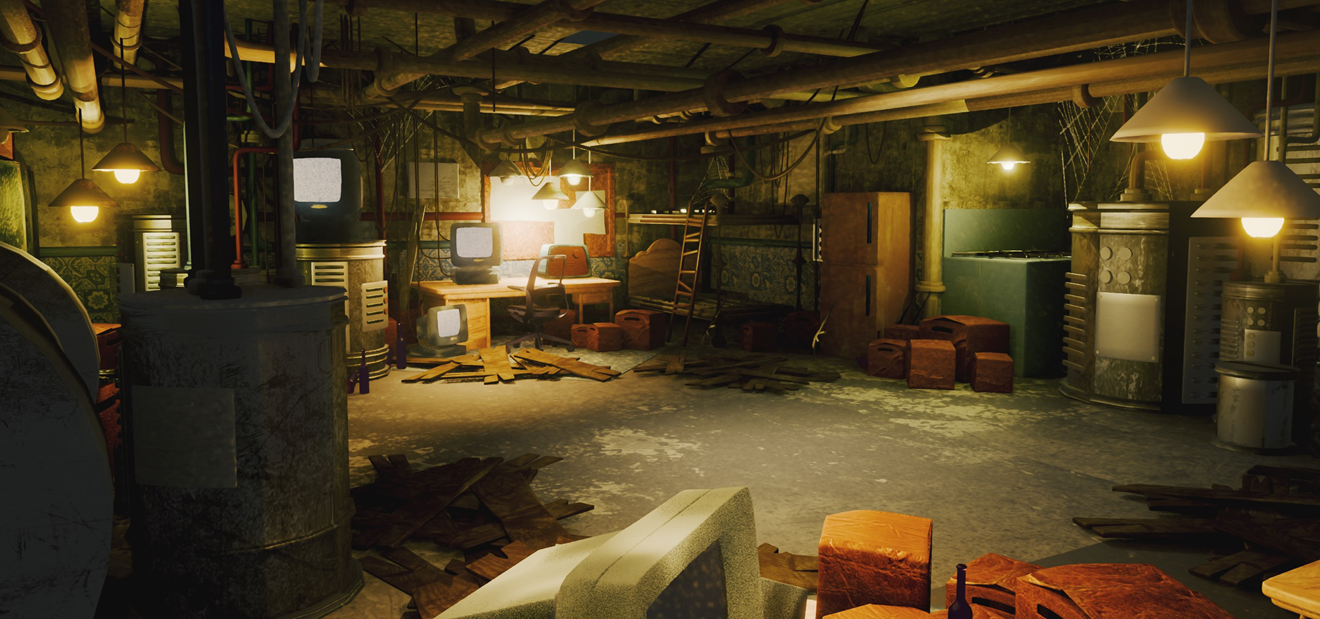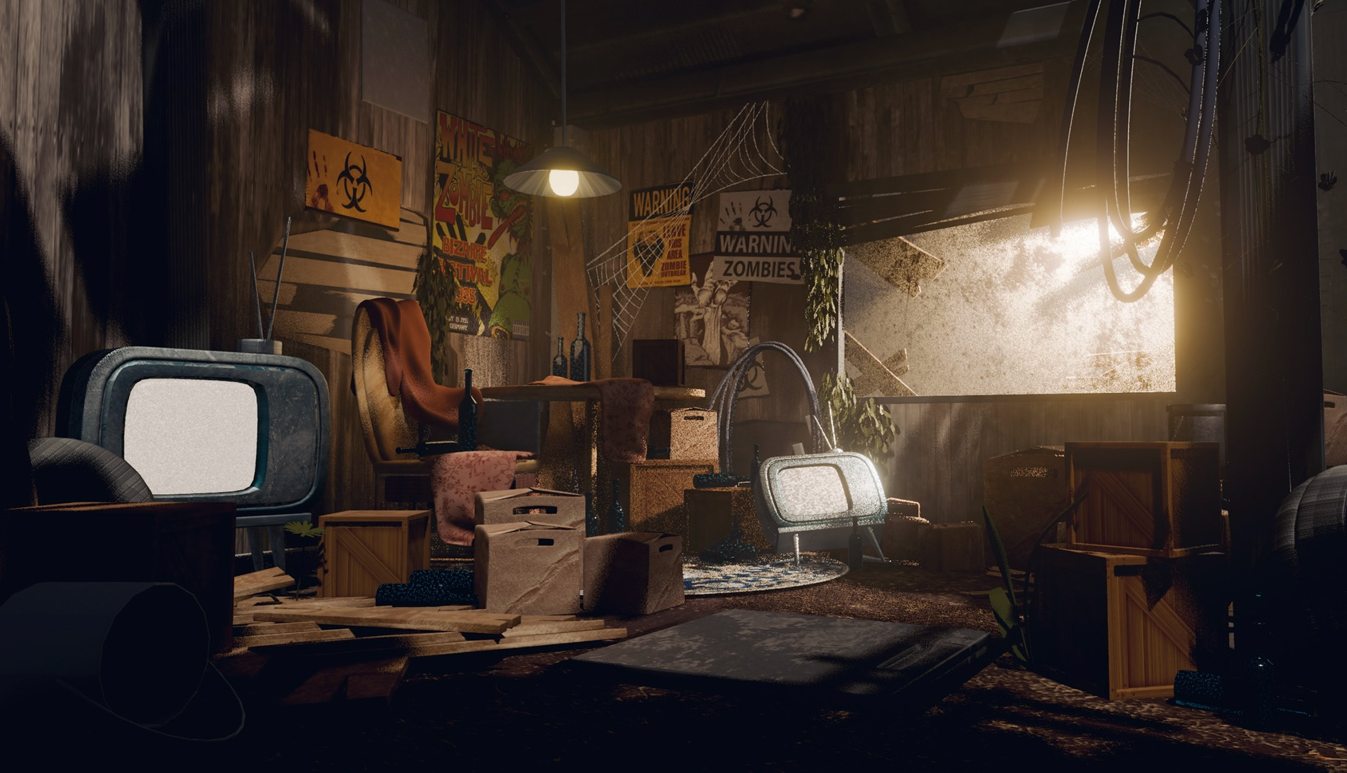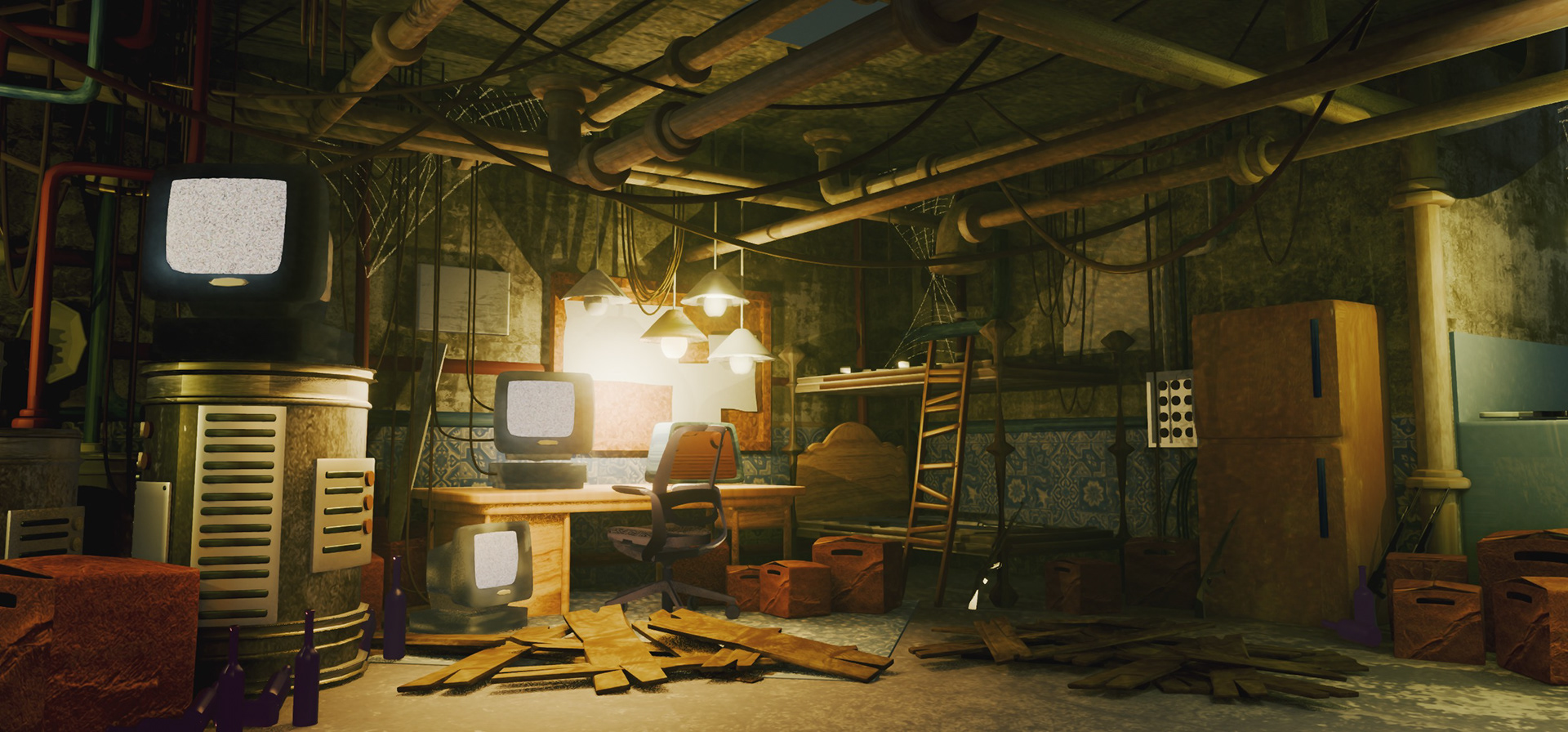 In this project, I was mainly an environment artist where I designed 2 environments - the shack and the basement, as well as handled the 3D aspects including modeling, shading, and lighting in Blender. I was responsible for all aspects of shading and lighting, and partial modeling of assets. Below are some early look development renders