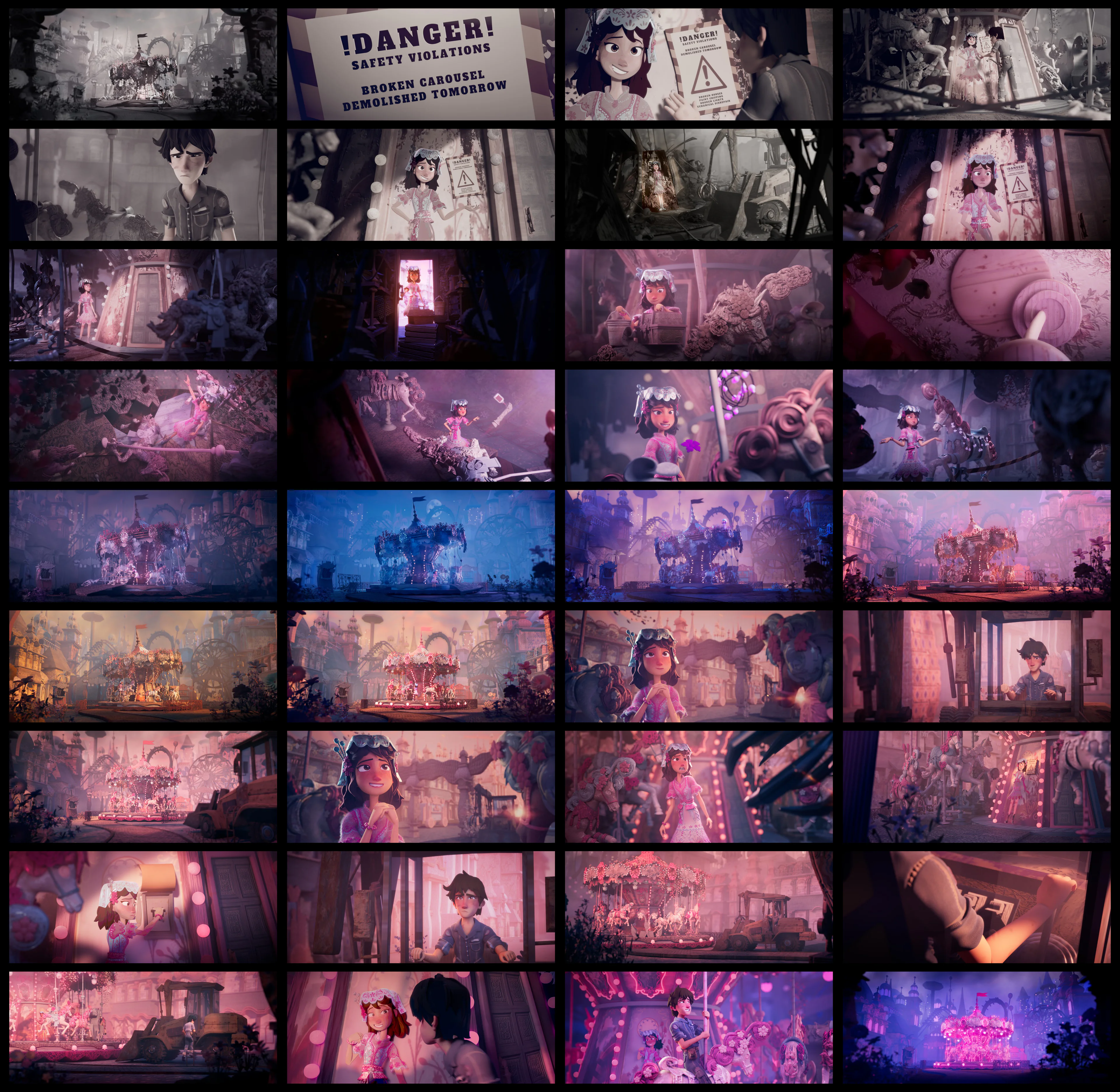 thesis logline: A girl residing in an abandoned carousel leaves the painting to race against the clock to fix her carousel before it gets destroyed the next day.